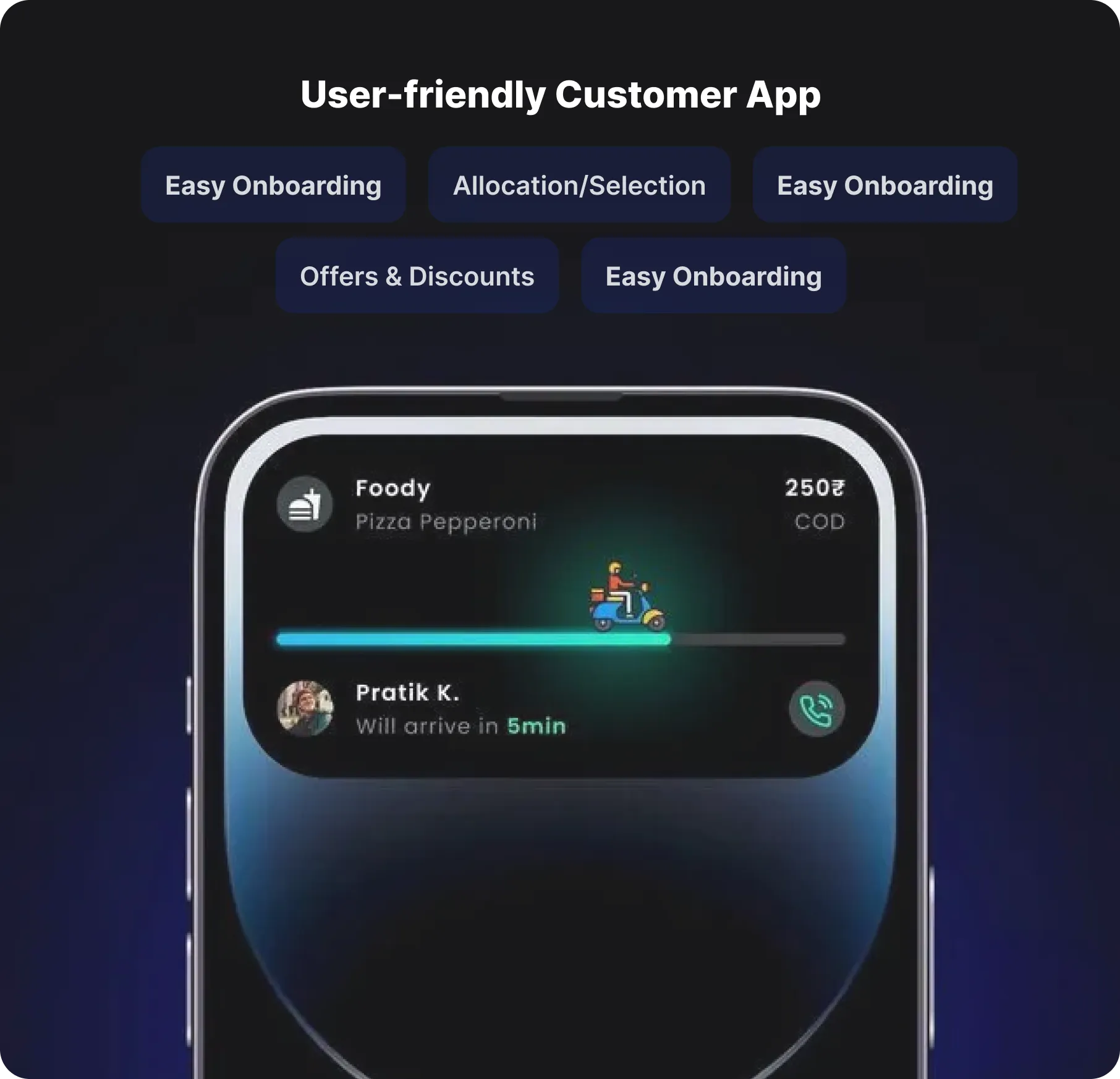 Kick start your own pick up and delivery business with 100% customized on demand pickup and delivery app solutions and services. Our on demand app builder creates on demand pickup and delivery apps leveraging AI-powered functionality and comprehensive features like real-time tracking, automated dispatching, smart admin panel etc. Streamline delivery logistics and coordination.
